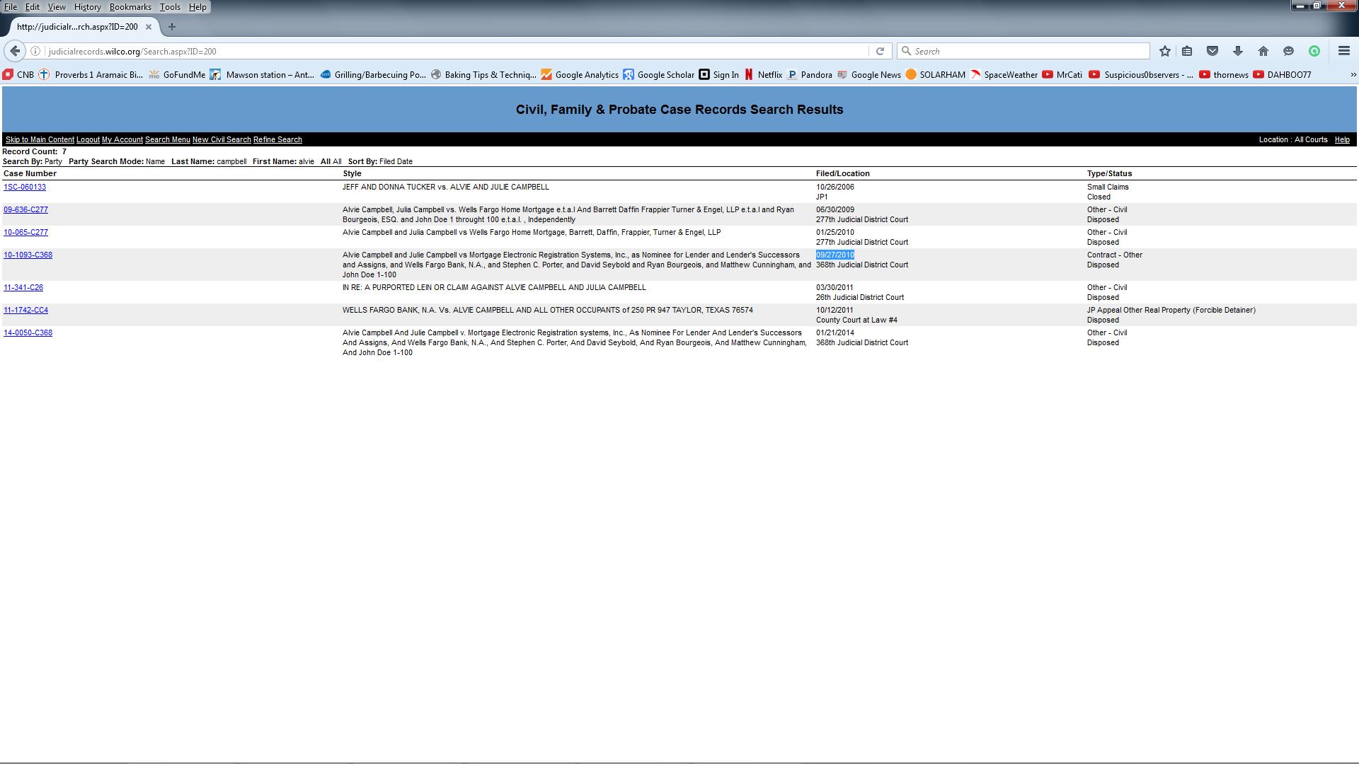 In the first image, is of the Court Docket for "Alvie Campbell". I want to show you how we allegedly ended up becoming vexatious litigants, according to Wells Fargo. You can ignore the first case in 2006, it was a landlord-tenant thing that did not go well for the landlord. The rest reflect the fight with Wells Fargo and its thieves, before, and after by admission in county public records, Wells Fargo was no longer a party. Hence, the courts never had jurisdiction to favor Wells Fargo. And to think we even tried to bring the fraud upon the court to the court, and it defended the fraud. Follow along, you'll see.